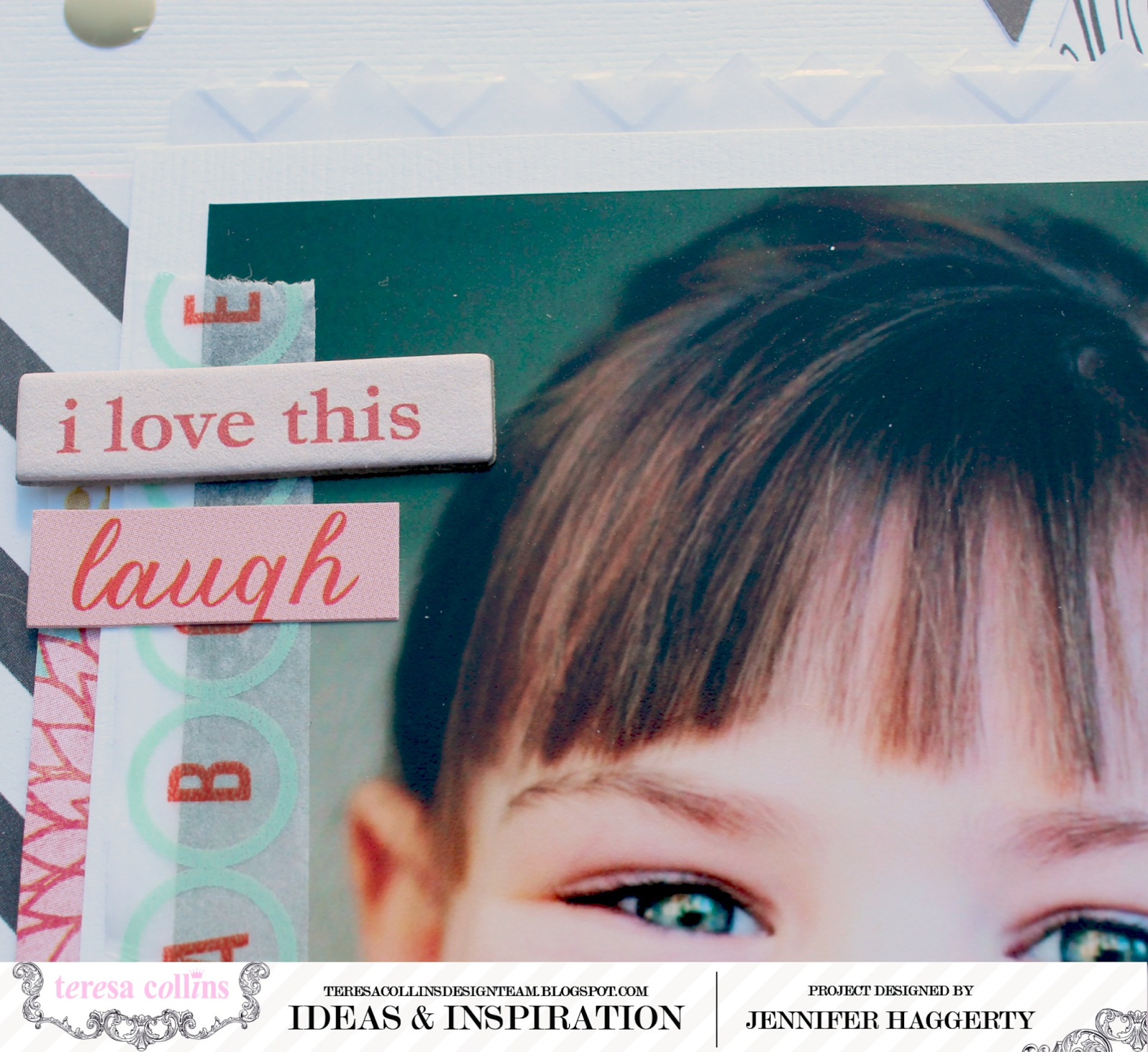 I added another chipboard sentiment plus a sticker over some cute decorative tape at the left hand corner of my photo. There is never a shortage of selection of embellishments with Teresa's lines!